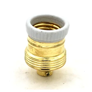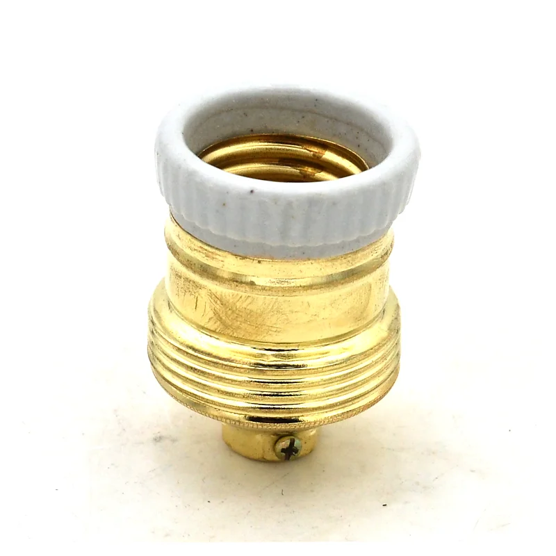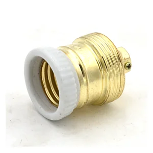 Portalampada ottone con isolamento in porcellana. Attacco E27.