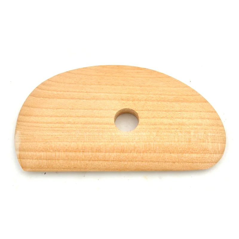 Spachtel aus Hartholz für die Arbeit mit Ton auf der Drehscheibe, ideal zum Glätten, Verdichten und Ausarbeiten der Oberflächen während der Rotation. Das Holz sorgt für einen schonenden Kontakt ohne Kratzer, während die Grifföffnung eine sichere Handhabung ermöglicht. Geeignet für Keramiker, Schüler und Werkstätten, bieten sie Zuverlässigkeit und Langlebigkeit im täglichen Einsatz.