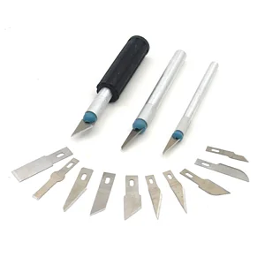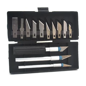 Pratical hobby knife set.Features Suitable for cutting wood, cardboard, paper, plastics, fabrics and foam board 3 blade holders with blade: small, medium and large 10 assorted extra blades Case with m...