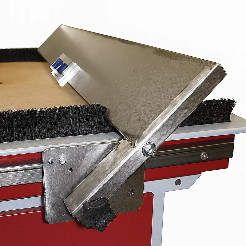 Steel angle guide for professional 60 cm disc grinder, designed to provide a stable and accurate support when grinding glass pieces. Its adjustable angles—90°, 75°, 60°, 45° and 30°—ensure clean, repe...