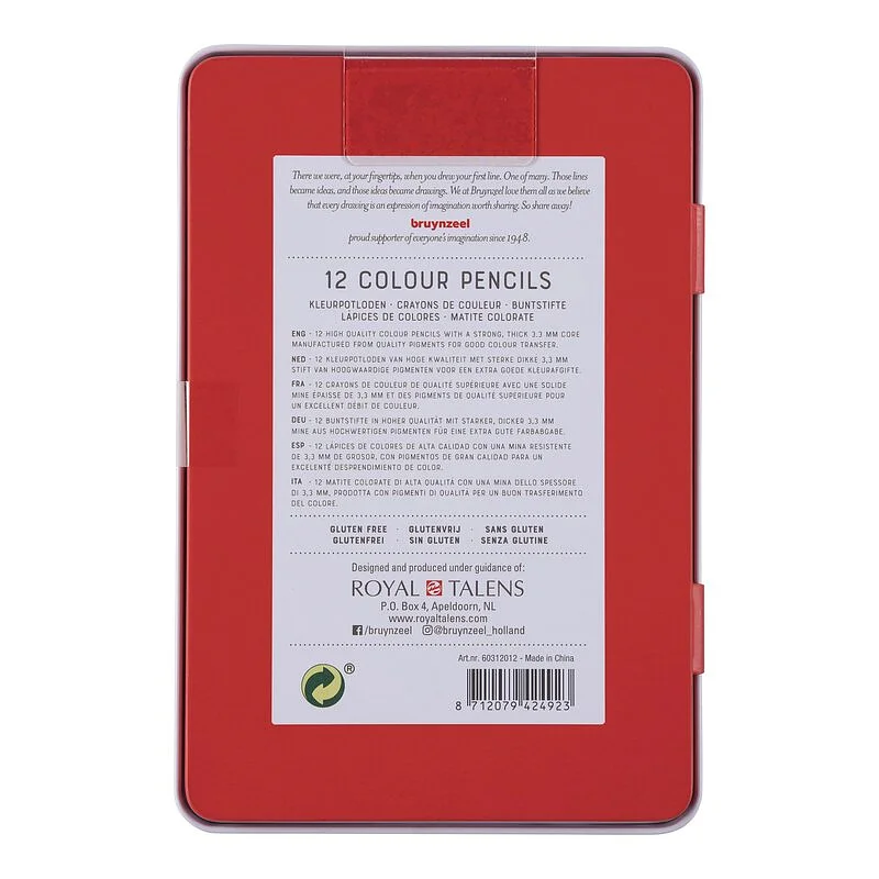 12 high quality colour pencils with a strong, thick 3.3 mm core manufactured from exceptional pigments for very good colour transfer.