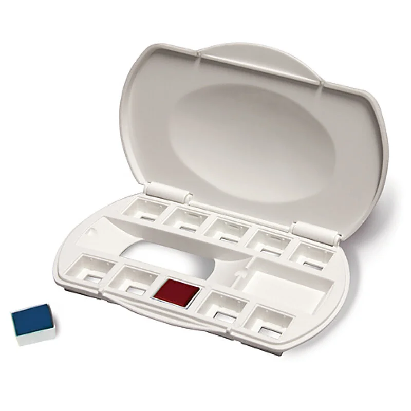 Pratica trousse per acquerelli. 10 scomparti per panetti 1/2 godet.