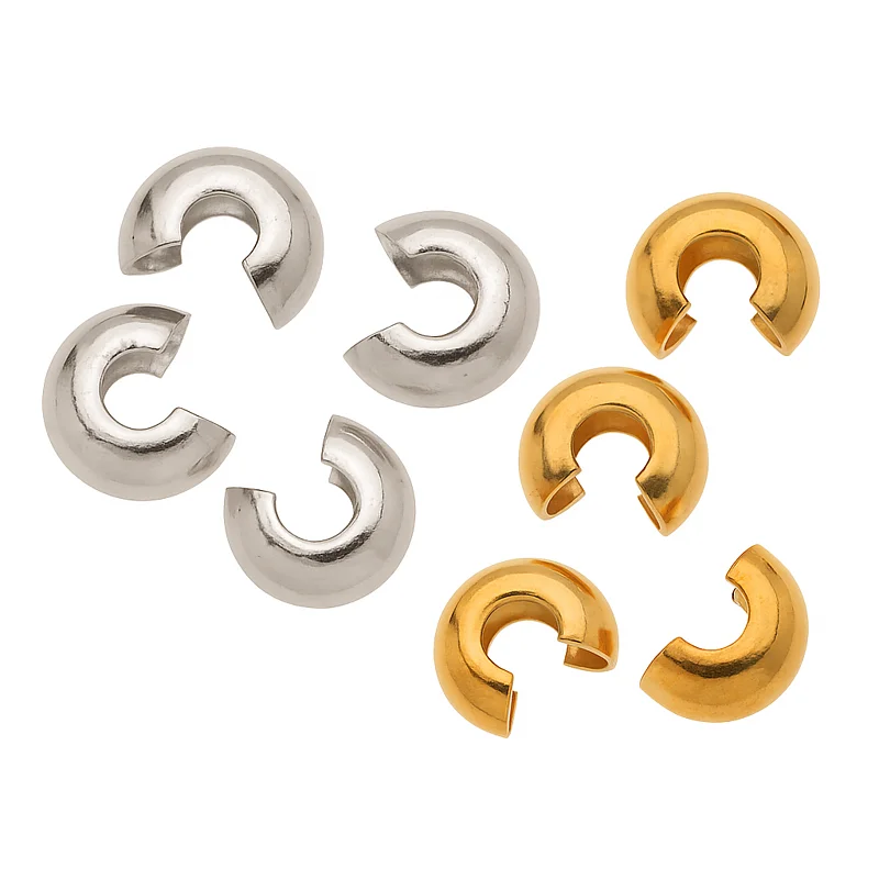 The 4 mm crimp covers (also known as bead covers), supplied in packs of 30 and available in silver or gold colours, are essential for jewellery makers. Perfect for hiding crimp beads, they are simply placed over and pressed with pliers. Nickel-free and easy to use, they give your handmade jewellery a neat and professional finish.