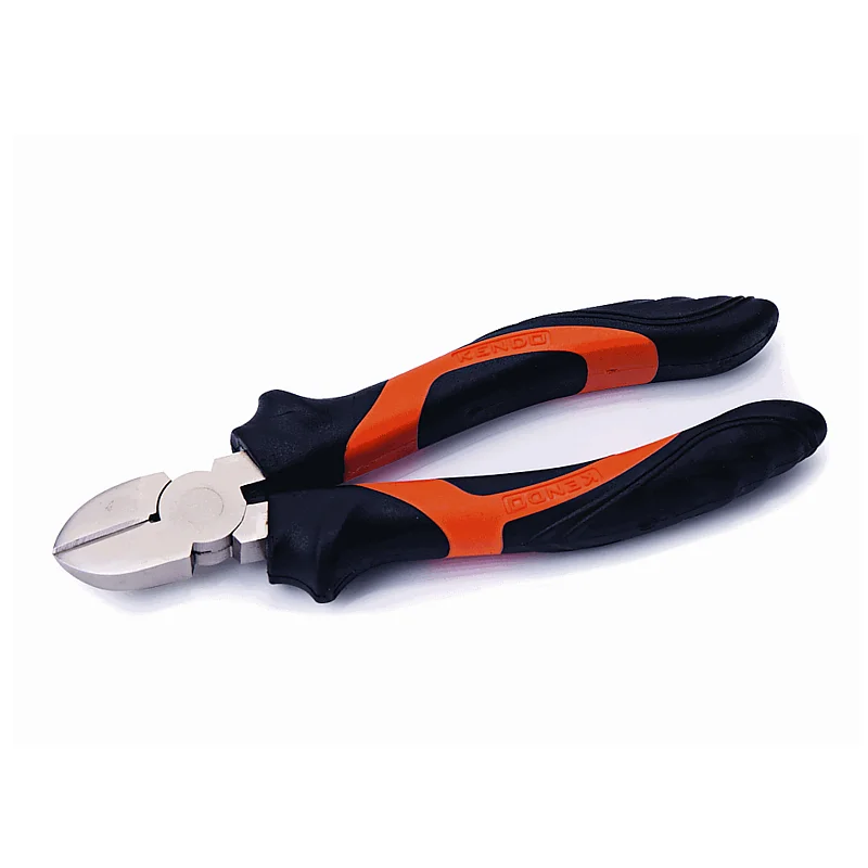 Kendo diagonal cutting pliers, 160 mm long, made of chrome vanadium steel for durability and cutting precision. Features a bi-material ergonomic handle for a firm and comfortable grip, ideal for electrical work and craft applications.