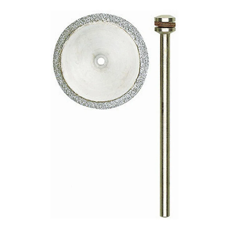 Diamond Cuutting Disc. Only 0,6 mm thick. For cutting very hard materials such as steel, porcelain, fibreglass, non-ferrous metals. Diameter 20mm. Arbor 2,35 mm.