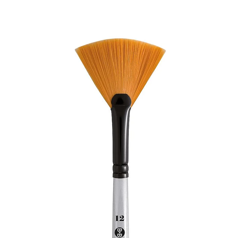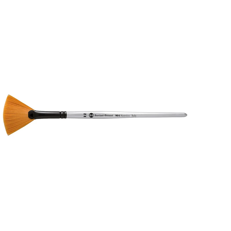 Brush with oblique cut tip in Gold synthetic yarn, with short handle in silver-colored lacquered shaped wood, with black-stained anodized aluminum ferrule.