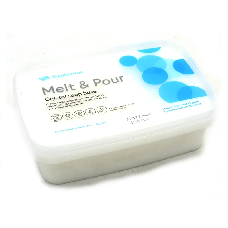 The Crystal Goats Milk soap base is naturally high in vitamins, including vitamin E, minerals, and rich in moisturising goat's milk, making it ideal for creating nourishing and moisture-rich soap bars. This base produces a smooth, creamy lather that cleanses and nourishes the skin.