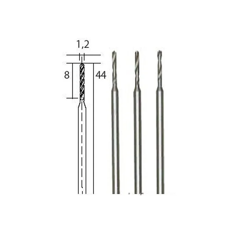 Purpose-made, selected, tungsten vanadium steel with high concentricity. Manufactured from a one-piece blank. High hardness for optimum life expectancy. For drilling metal, non-ferrous metals, plastic, PC cards and wood. Work speeds: hard materials approx. 3,000 rpm, soft materials approx. 8,000 rpm. All shanks 2.35 mm.