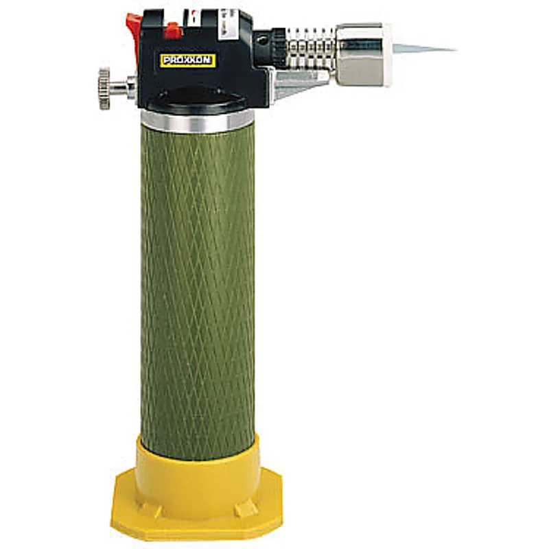 Used for soldering, de-soldering, brazing, heating of workpieces, tinning. Individually controllable gas and air supply. Super fine flame shape withtemperature attaining 1,300 C. Ideal for precision work. Fitted with an elec-tronic piezo crystal lighter. The tank contents of 50ml is sufficient forapproximately 120 minutes operation withnormal flame. Rechargeable with standardbutane cartridges used for lighters.