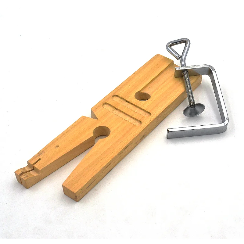 This bench pin is ready to use. Includes a V-slot, inserts and an extension for rings with a saw blade slot. The recessed oval areas are used to hold the components, or as a reference for the cuts while working. Equipped with a clamp with a clamping capacity of about 60 mm. Dimensions: 200 x 60 mm.