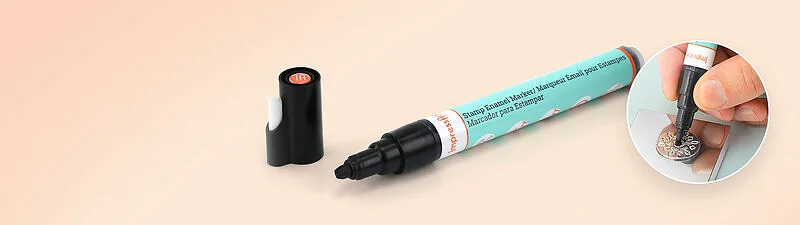 ImpressArt's Stamp Enamel Marker is an acrylic ink used to darken stamped impressions so your design will be clearly seen. Convenient applicator marker makes highlighting impressions quicker, easier and cleaner. Directions: Run the tip of your marker over the stamped area from left to right Wait 1-3 minutes Wipe away excess ink with a soft cloth