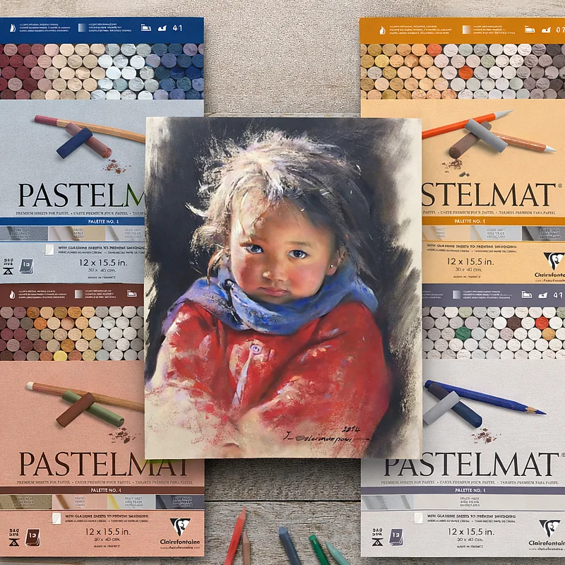 Pastelmat® pads give pastel artists new creative possibilities thanks to a unique surface that grips pigment more effectively than Ingres papers while being less abrasive than sanded papers. Each pad contains 12 sheets in assorted colours, with variable formats, and includes glassine interleaving sheets to protect artworks from smudging and pigment transfer.