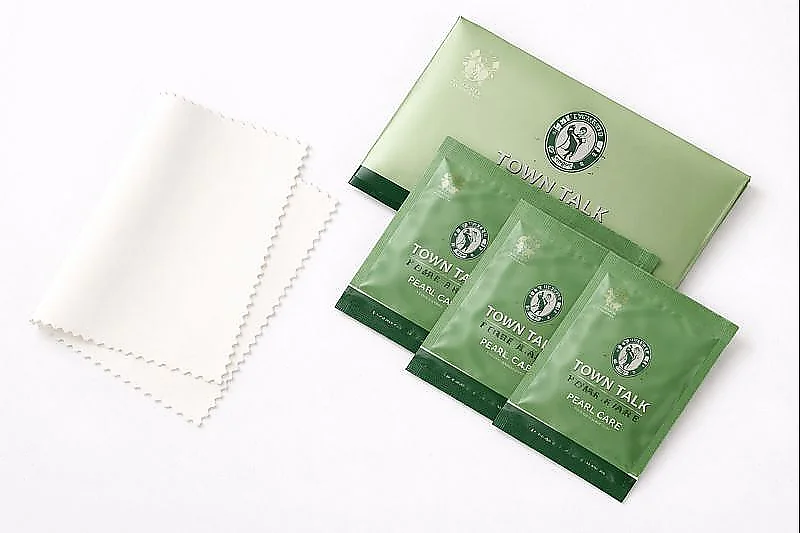 The wet tissues are pre-soaked with a specific pearl cleaner, ready to use and suitable for removing dirt, residues and fingerprints without damaging the pearl surface. The microfiber cloth gently polishes the pearls after cleaning, restoring their natural shine.