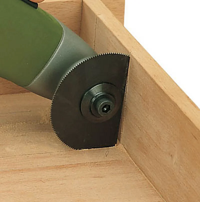 Oscillates, making it ideal for cutting metal, wood, PC cards, plastics, plaster of Paris and many other materials. The segment cut facilitates exact cutting right into corners.