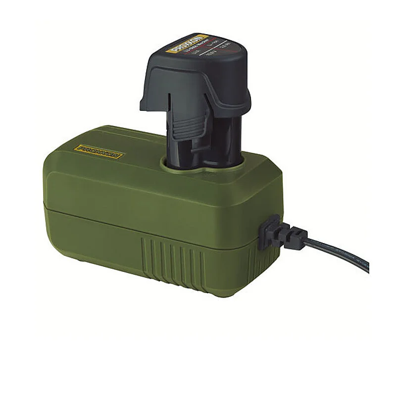 Charges the PROXXON lithium-ion battery type LG/A2 (10.8V, 2.6Ah) in one hour. With integrated temperature control and charge level-/function control-LED signal light: Yellow = charging, Green = charged. Regeneration function also enables recharge of fully discharged batteries provided these are still intact. Additional maintenance mode charging ensures that the battery charger remains fully charged.