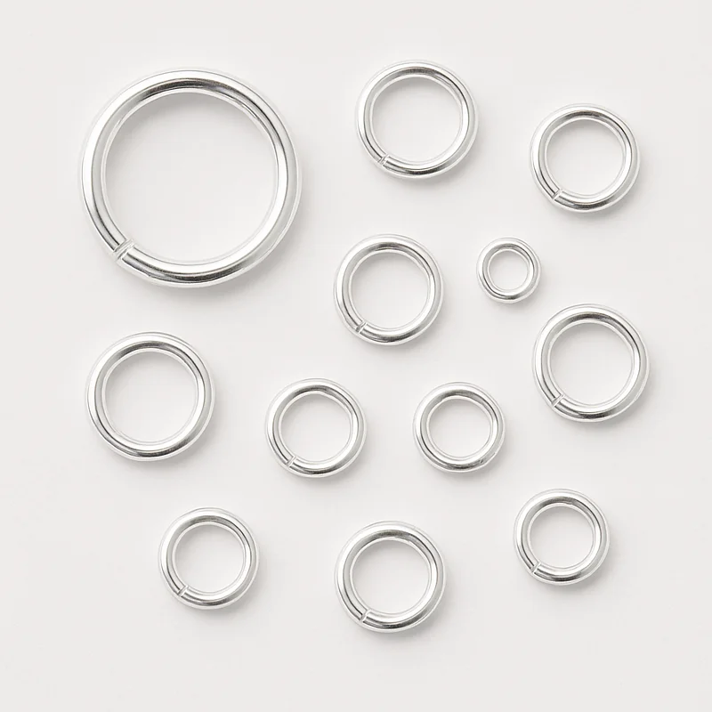 Open jump rings made of 925 sterling silver, ideal for connecting charms, clasps, and jewelry components. Available in multiple sizes, listed as outer diameter × wire diameter. A premium Made in Italy product ensuring precision, strength, and elegance in every connection.