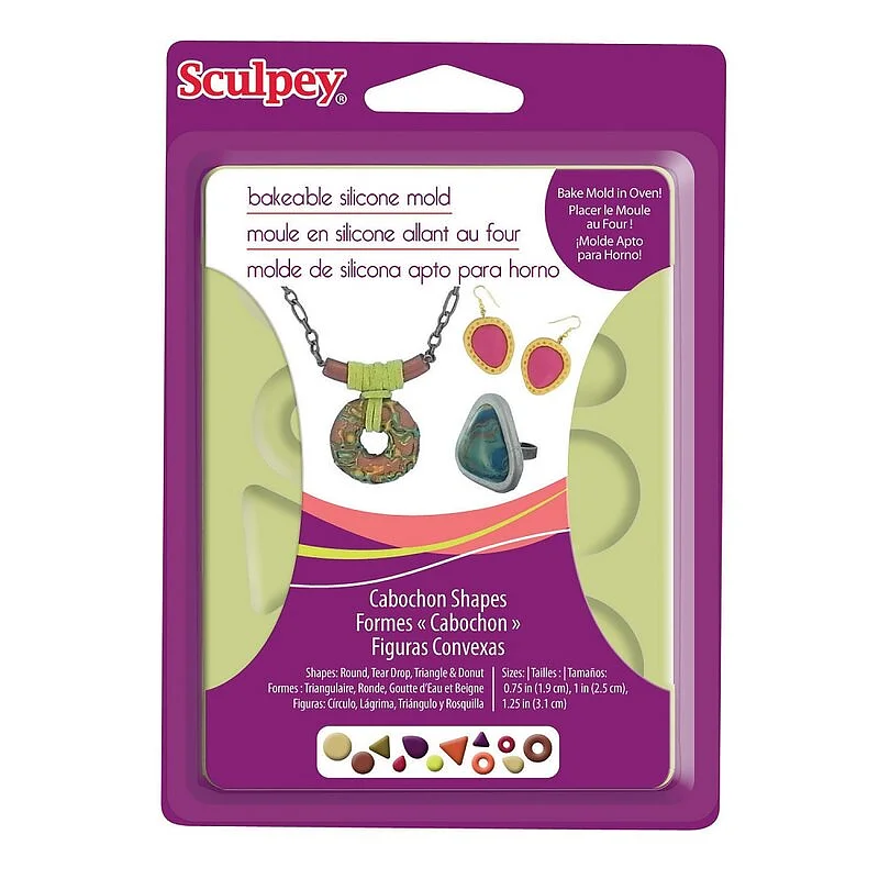 Questo stampo in silicone per Polymer clay può essere cotto in forno! Lo stampo include le seguenti forme: triangolo, ciambella e lacrima, di 3 dimensioni: 20 - 25 e 30 mm Funziona perfettamente con lo stampo Sculpey Bezel
