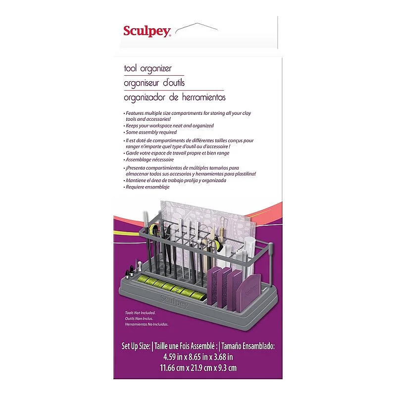 Un design intelligente che aiuta a mantenere il tuo spazio di lavoro organizzato! Include scomparti di formati multipli per lo stoccaggio di tutti i vostri strumenti di argilla e accessori! Richiede un semplice montaggio.