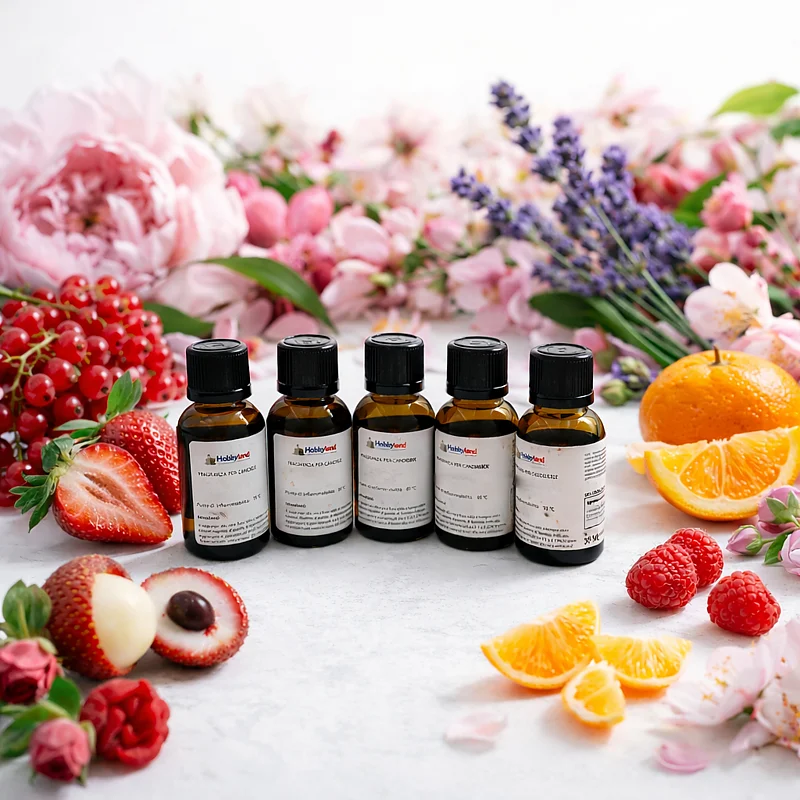 The Spring, Please candle fragrance set features a seasonal selection of 5 scents (30 ml each): Eufloria, Peony, Strawberry, Flowers & Buds, Caramelized Lychee. Perfect for creating bright, floral candles, it delivers excellent scent throw both cold and hot, enhancing interiors with sweet, fresh and fruity notes inspired by spring.
