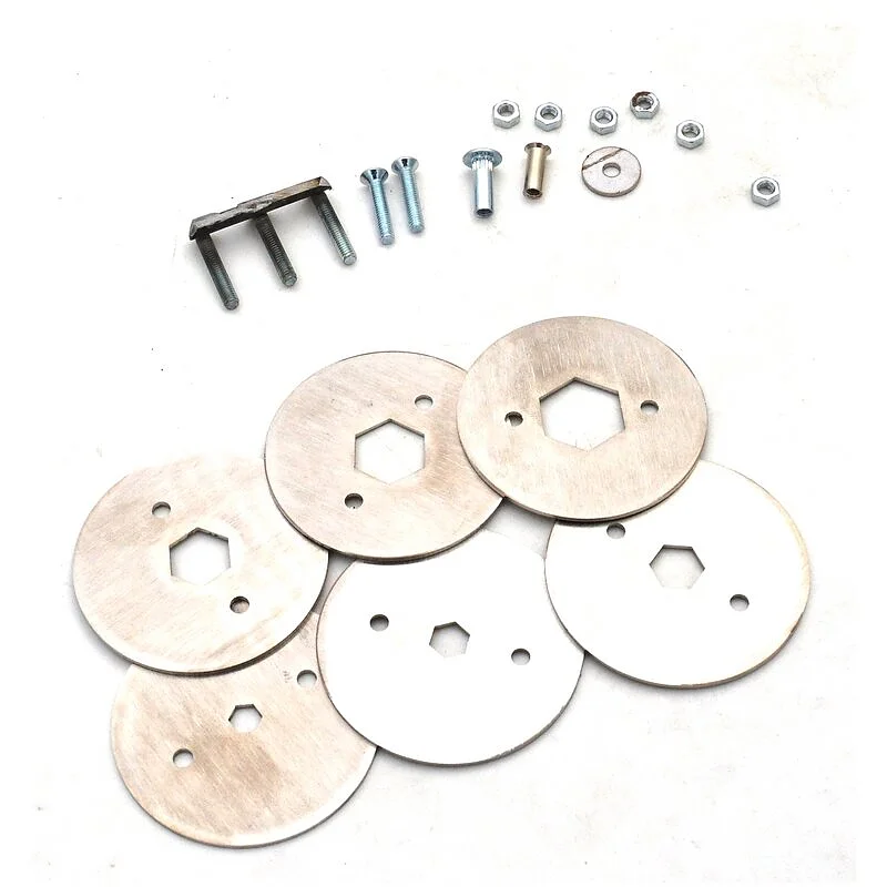 6 steel discs, 57 mm external diameter, 1.5 mm thick