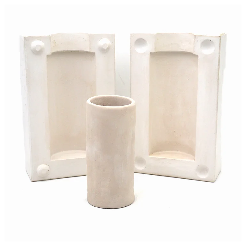 Plaster mould in a cylindrical vase shape designed for producing hollow ceramic objects, suitable for both casting techniques (slip, liquid clay or SlipFast) and press moulding with plastic clay. The linear geometry ensures consistent wall thickness and repeatable results, making it ideal for batch production of decorative items and artistic ceramics. Available in multiple diameters and heights.