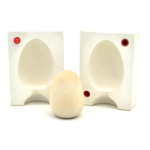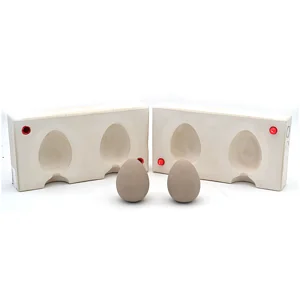 Plaster mould in an egg shape designed for producing hollow ceramic objects, suitable for both casting techniques (slip, liquid clay or SlipFast) and press moulding with plastic clay. Ideal for batch production of decorative items, it is particularly suited for creating Easter eggs. Available in multiple sizes: smaller formats allow the production of 2 eggs per cycle, while larger sizes feature a single cavity.