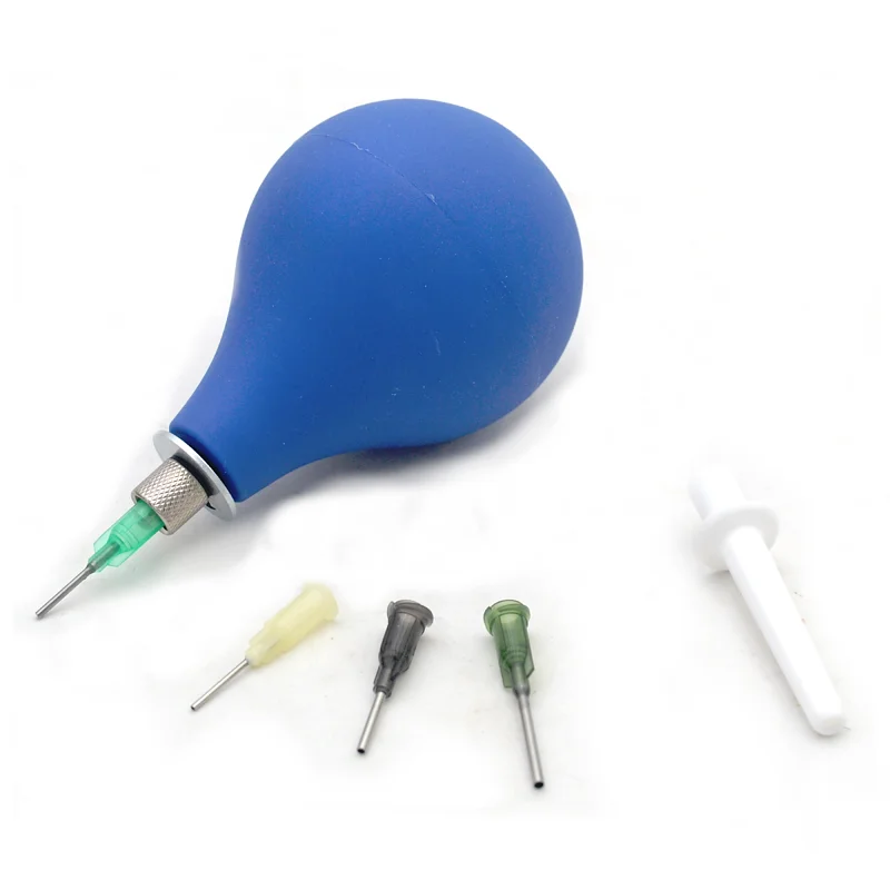 Il set include una peretta morbida, un adattatore e 4 ugelli in plastica intercambiabili. E' leggera, facile da usare e pulire. Questo sistema garantisce inoltre un controllo del liquido sempre costante e regolare.