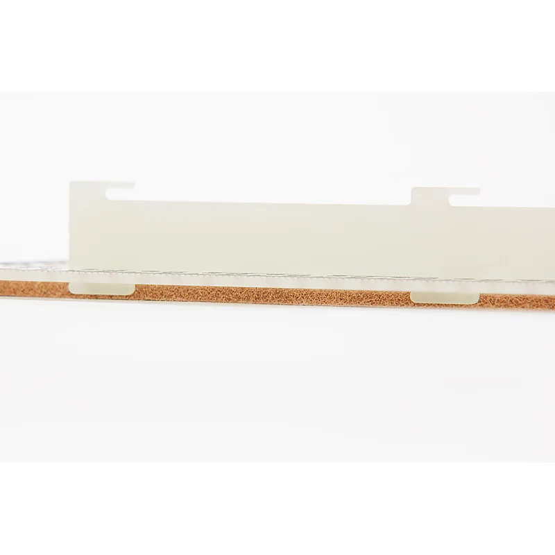 This cutting square made of epoxy material has several features that make it a versatile tool. The special guide rail, adjustable for thicknesses of up to 1 mm and over 2 mm, allows for cutting always precise. The back of the square is equipped with a non-slip strip. On the square, the reference holes are spaced 20 mm apart from each other.