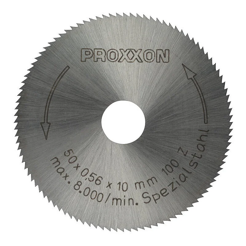 Spring steel saw blade 50mm diameter (10 mm bore), fine teeth. Designed for precision cutting.