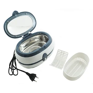 The packaging contains: Ultrasonic cleaning station Basket to protect breakable objects Overall dimensions: 210 x 150 x 140 mm. Tank size: 165 x 88 x 48mm Capacity: 0.65 litres Power: 35W