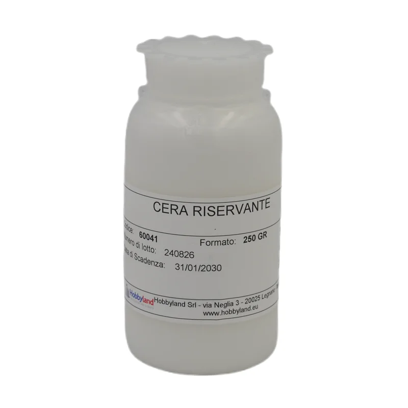 Perfect for ceramic decoration. Applied to bisque to mask specific areas during decoration or glazing. The wax burns off completely during firing. Packaged in 250 g containers.