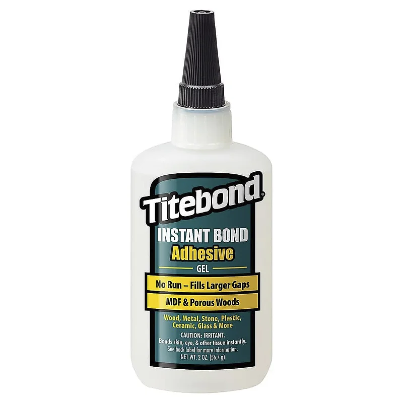 Titebond Instant Gel es un adhesivo profesional en gel, ideal para madera y materiales derivados. Con el mayor tiempo de trabajo entre las colas instantáneas y su consistencia espesa, es perfecto para rellenar huecos, unir superficies porosas o irregulares y para diversas aplicaciones de carpintería y ebanistería. También apto para caucho natural, aluminio, acero inoxidable, fibra de vidrio, PVC, plástico y porcelana. Las uniones son más resistentes que la propia madera y pueden pintarse.