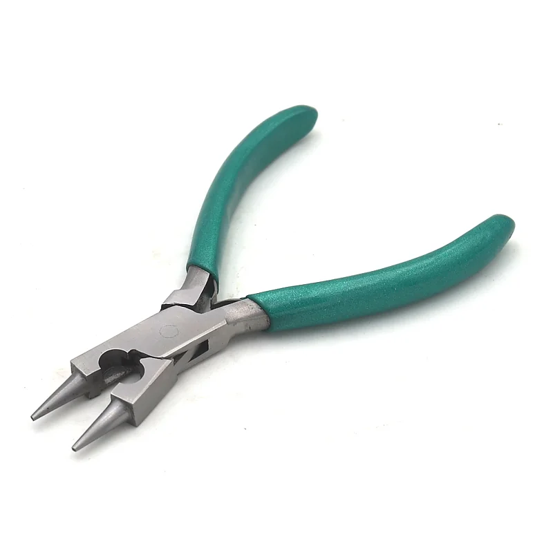 La pinza para rosario se llama así porque es ideal para hacer colgantes de estilo rosario, donde cada cuenta se coloca en un trozo de hilo y se anuda. Gracias a los picos redondos y finos, el alambre se puede moldear y cortar con una sola pinza.