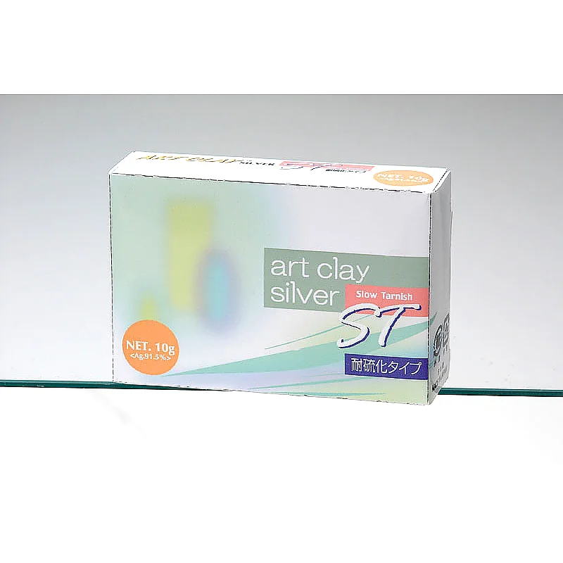 La frmula especial del Art Clay Silver ST permite que las piezas se pongan negras ms lentamente que las realizadas con otros productos Art Clay Silver. Art Clay Silver ST contiene partculas ultrafinas de plata que lo hacen ms resistente y brillante que la serie ACS standard. Este producto se puede cocer en la rejilla de coccin sobre la hornilla o con un soplete como todos los productos de la serie ACS 650. Si se cuece en el horno, hay que cocerlo a 800 C por 30 minutos. Versin arcilla. Bloquecito de 10gr.