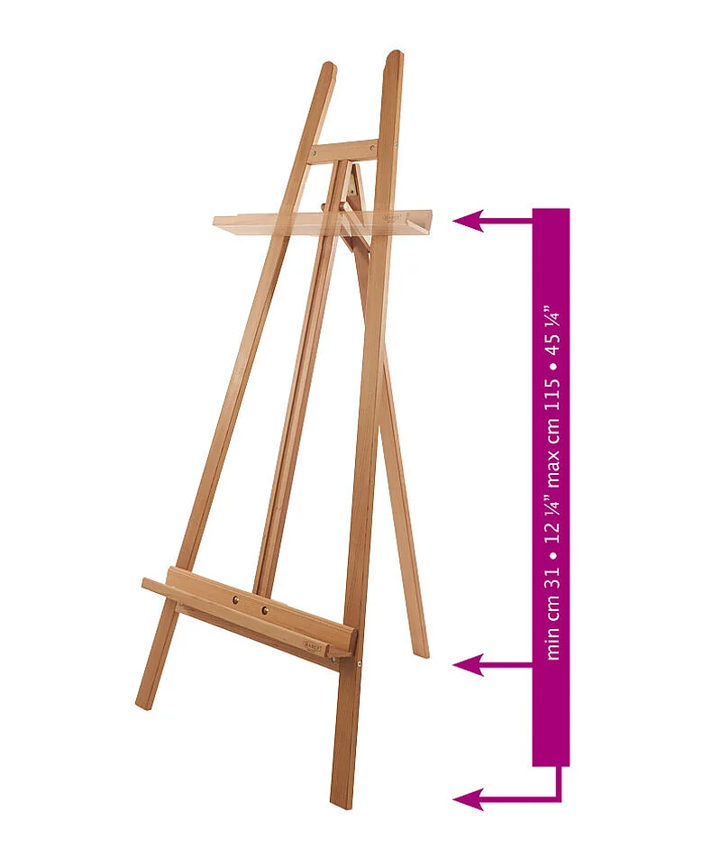 Caballete tripode de madera: práctico, robusto, muy estable y plegable. Imprescindible para pintar cómodamente en cualquier lugar, desde la perspectiva adecuada. Especialmente diseñado para satisfacer las múltiples necesidades de los artistas.