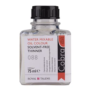La pintura al óleo miscible con agua Cobra, por supuesto, puede diluirse con agua, pero un diluyente también puede ser muy útil. Este diluyente sin solventes hace que la pintura sea más fluida, más delgada y ayuda a que se seque más rápido, lo que lo hace especialmente adecuado para las primeras capas de su pintura.