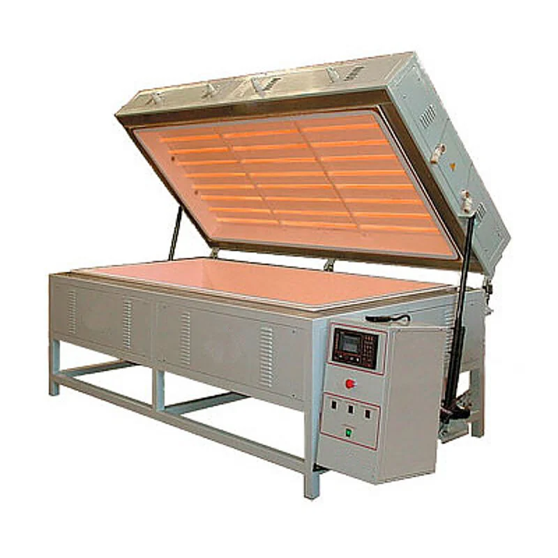 Horno eléctrico monocapa para vidrio, ideal para fusión, curvado y decoración. Estructura de chapa de acero plegada con mirillas periféricas para control visual y refrigeración. Interior de fibra cerámica de alta densidad con tratamiento superficial. Revestimiento de aluminio con cámara de aire ventilada. Apertura de concha con actuadores eléctricos y mando a distancia. Elementos calefactores protegidos en tubos de cuarzo para una perfecta uniformidad térmica. Controlador con 15 programas de 20 segmentos.