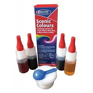Kit de pinturas Scenic Colours para Scenic Water, contienen tintas solubles en agua en los colores rojo, azul, negro y amarillo....