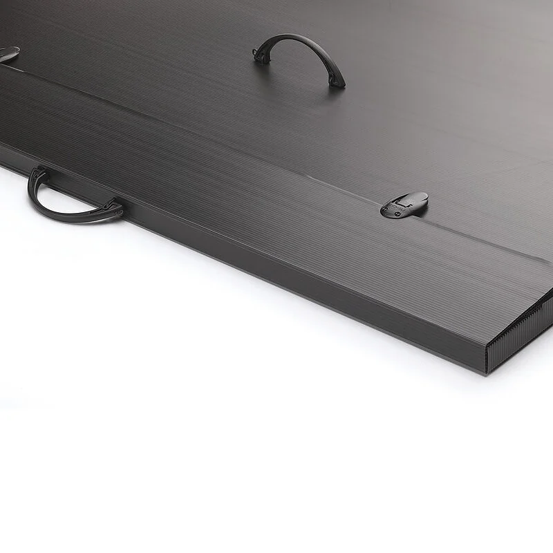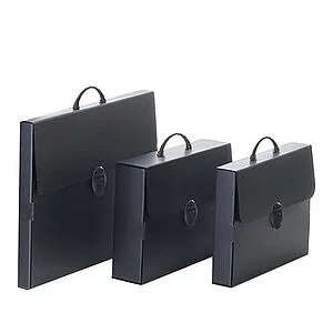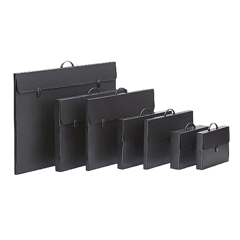 El Maletín de Polipropileno Alveolar Negro es la solución ideal para transportar dibujos y láminas, incluso en formatos grandes, de hasta 70x100 cm. Fabricado en Italia, cuenta con un asa resistente y cierres negros para garantizar practicidad y seguridad. Disponible en los siguientes formatos: