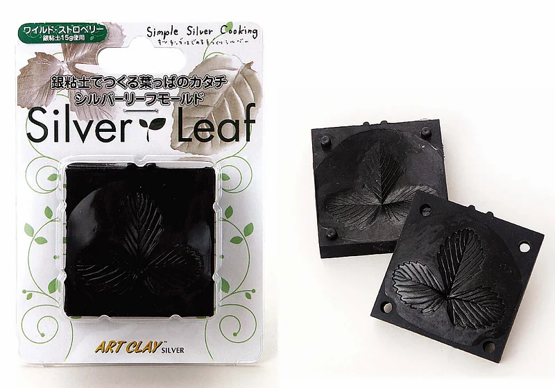 Molde de silicona, 2 partes. Hoja tipo A: Fresa silvestre Para realizar esta hoja hacen falta 12gr. de Art Clay Silver Dimensiones finales 40x50mm. Espesor 0,8mm.