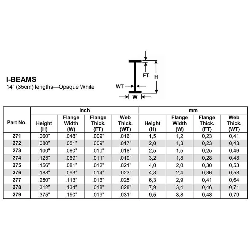 Evergreen Scale Models è l'azienda più rinomata al mondo per la produzione di forme in polistirene per la creazione di modelli in scala. Il grande assortimento a catalogo di lastre, profili e strisce è perfetto per artisti, architetti e modellisti. In questa pagina troverai il nostro assortimento di profilato sez. i polistirene bianco
