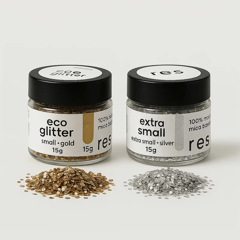 Aporta un brillo ecológico a tus creaciones con Glitter Natural de mica, libre de plástico, para espolvorear en moldes o mezclar en Reslin®.