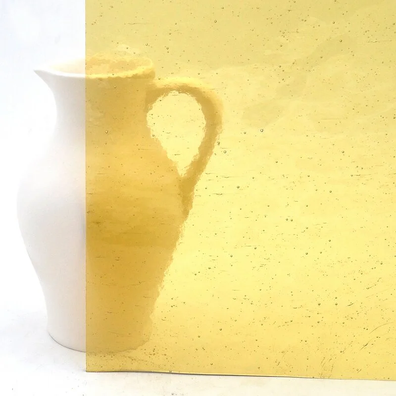 Colores intensos y un efecto antiguo inconfundible. El vidrio catedral DOM es el vidrio más utilizado para la producción de vidrio con plomo (estilo Art Noveau em>) o para embellecer proyectos de Tiffany. La superficie del vidrio es ondulada, mientras que el vidrio puede tener algunos pequeñas burbujas o imperfecciones típicas del vidrio de la catedral.