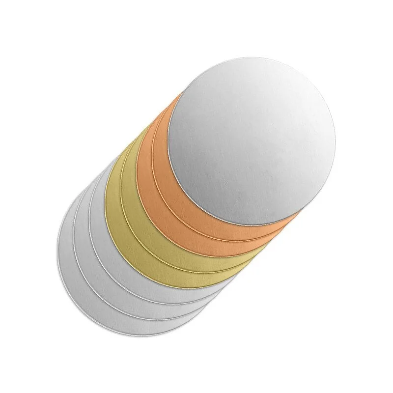 Comprend 8 disques par paquet Métaux: Aluminium 1,2 mm (3 pcs), Laiton 1,2 mm (2 pcs), Cuivre 1,2 mm (2 pcs), Alkeme 1,0 mm (1 pcs)