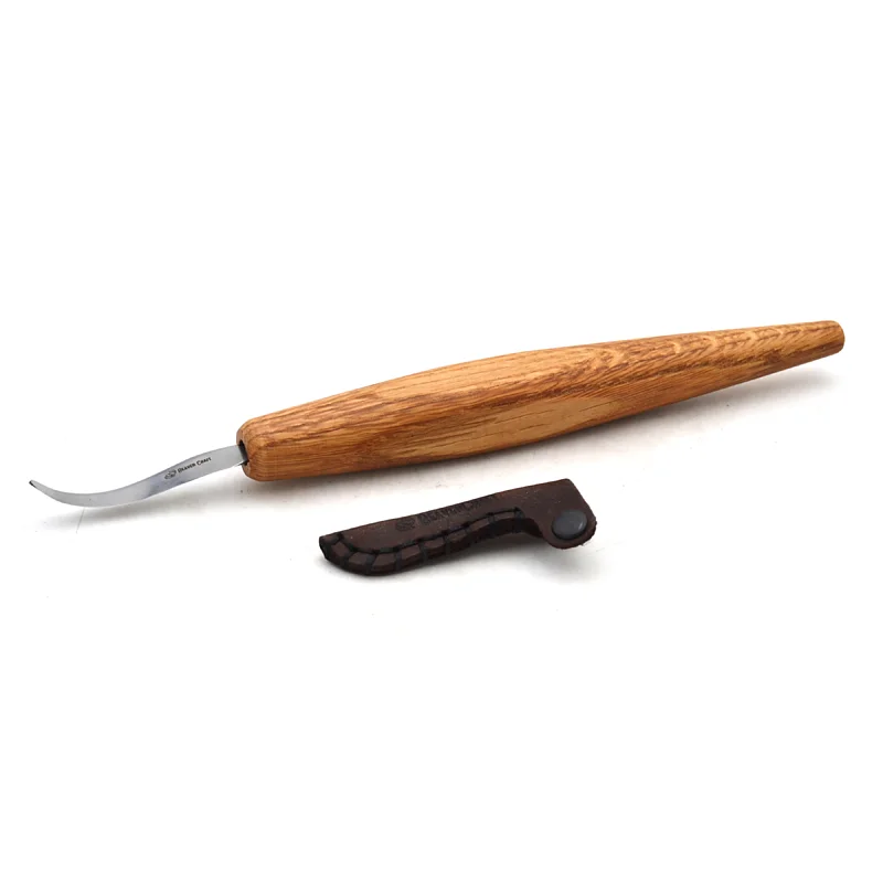 Le couteau à découper incurvé est parfait pour faire des cuillères, des bols, des tasses. La lame fine à double biseau vous permet de réaliser des coupes très précises et profondes dans le bois, même courbé. >strong>Caractéristiques principalesLa lame est en acier au carbone et est extrêmement tranchante, biseautée des deux côtés : elle vous permettra de sculpter avec facilité en utilisant l'autre main pour optimiser le contrôle.Poignée ergonomique, en chêne traité à l'huile de lin.Version pour droitier