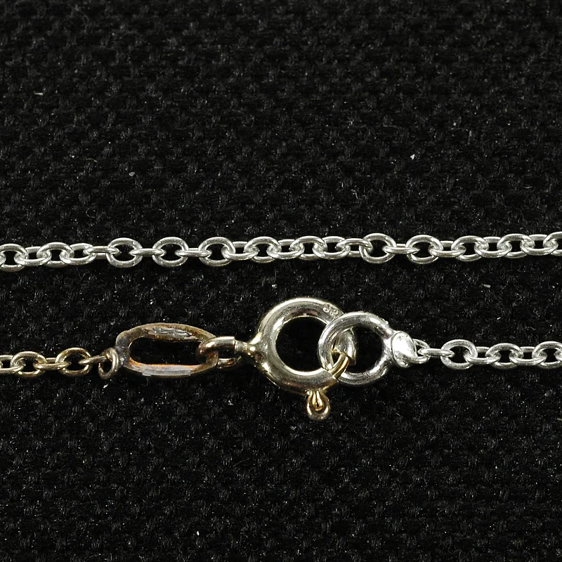 Chaîne en argent 925.Caractéristiques principalesFermeture à mousquetonLongueur : 40 cmLargeur: 1,3 mmPoids: 1,69 grFabriqué en Italie...