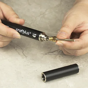 Le Craftplus® Pro Thread Burner coupe et scelle rapidement les fils cirés, torsadés ou tissés par chaleur contrôlée, empêchant tout effilochage. Sa batterie rechargeable 1100 mAh et la technologie Pass-Through offrent un travail sans fil ou pendant la charge, tandis qu’un arrêt automatique après 30 minutes protège la pointe. Parfait pour la couture, le bricolage textile et la réparation de sangles abîmées.