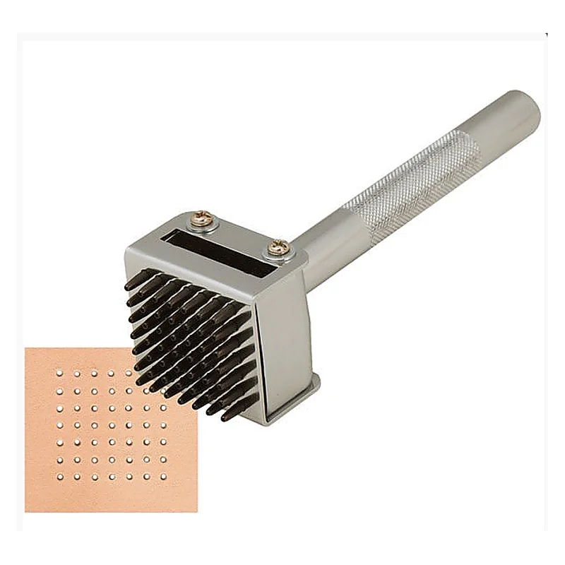 Utensile ideale per creare disegni perforati personalizzati sulla pelle. I tubi perforanti da 1.0 mm sono distanziati l'uno dall'altro a circa 5 mm e sono movimentabili in modo da realizzare pattern s...