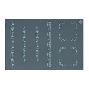 Édition limité spéciale! Vous peut utiliser pour créer des textures avec l'aide d'un rouleau à pâtisserie, ou utiliser en techniques Metal Clay comme un stencil pour créer une le dessin avec la crème sur une surface pre-finie. Finalement on peut appliquer sur la porcelaine ou le verre pour utiliser la crème Overlay ou crèmes pour dépolir