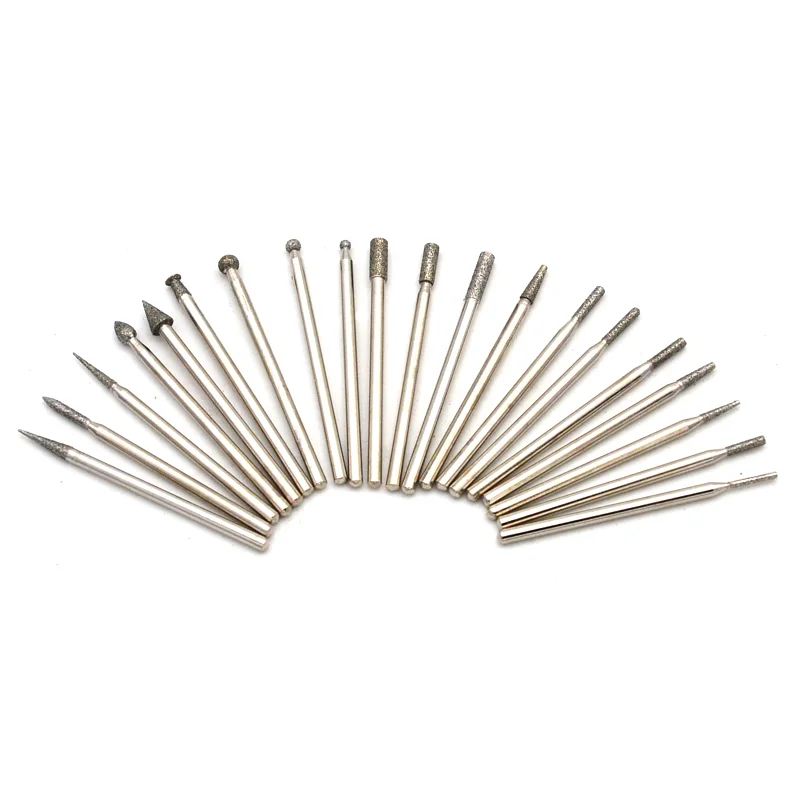 Cet ensemble comprend 20 fraises diamantées, idéales pour la gravure et le traitement de matériaux tels que le verre, la céramique, la pierre ou le plastique. L'ensemble comprend les profils les plus utilisés, tels que le cylindre, le cône, les sphères et d'autres formes spéciales. L'attachement de tige standard leur permet d'être utilisés sur les perceuses les plus populaires sur le marché, telles que Dremel ou Proxxon.
